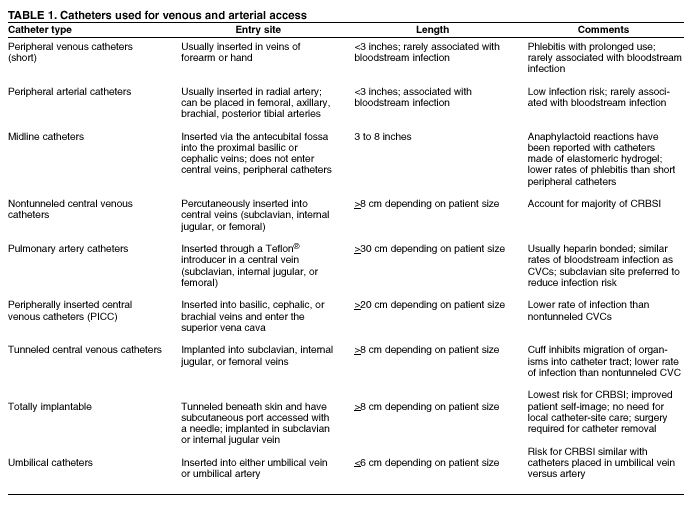to aseptic technique might not be feasible. Certain catheters (e.g., pulmonary artery catheters and peripheral arterial