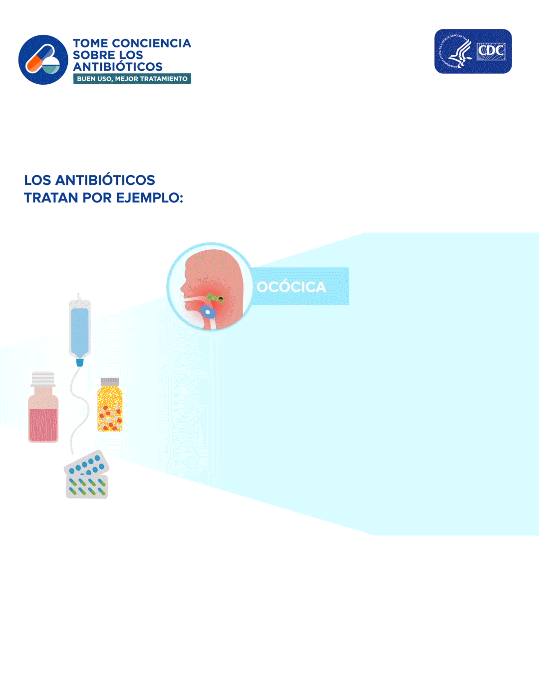 Los antibióticos tratan ciertas infecciones causadas por bacterias. No tratan infecciones virales, como los resfriados o la influenza. Cuando no se necesitan, los antibióticos no lo ayudarán y los efectos secundarios incluso podrían hacerle daño. Tome Conciencia sobre los Antibióticos.