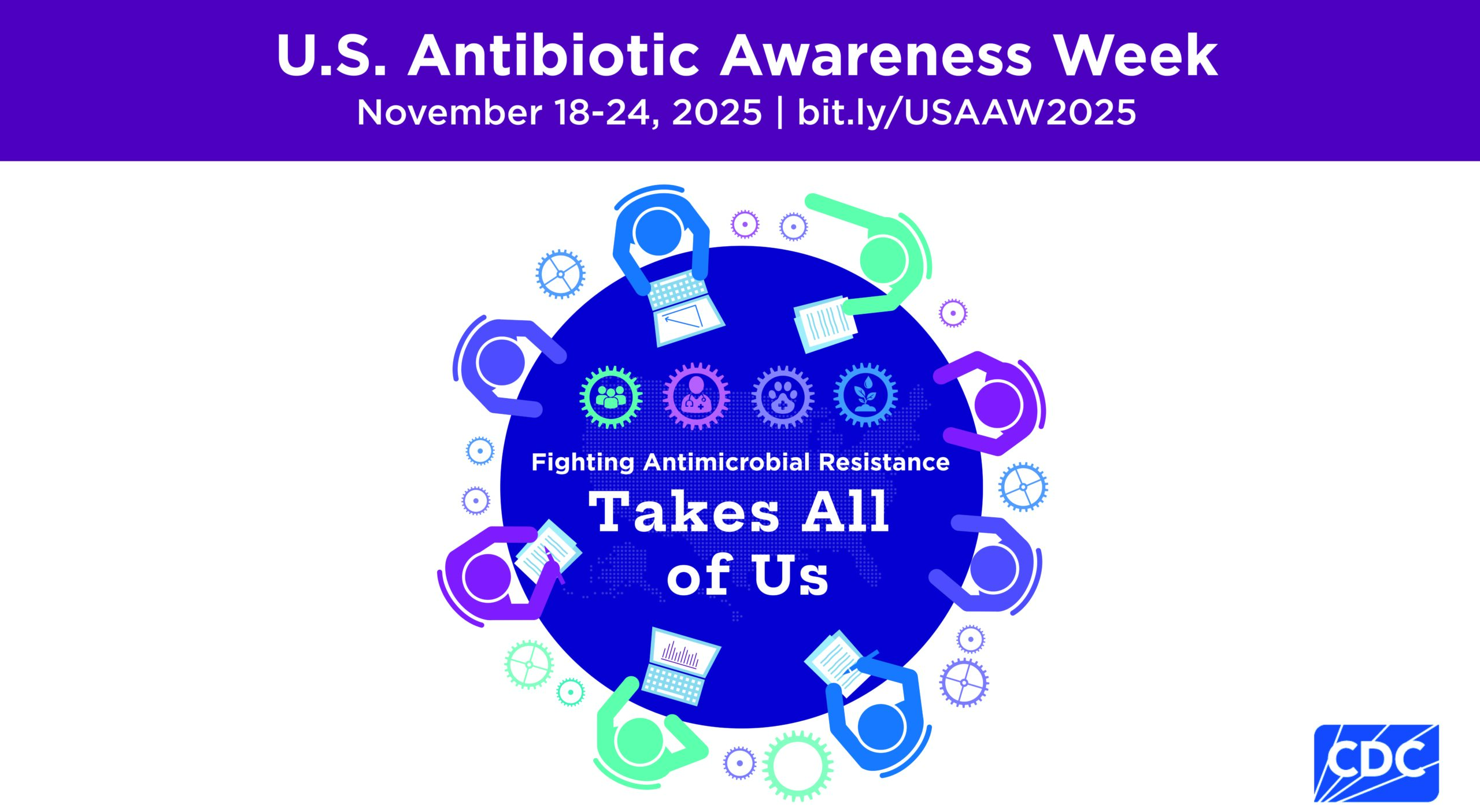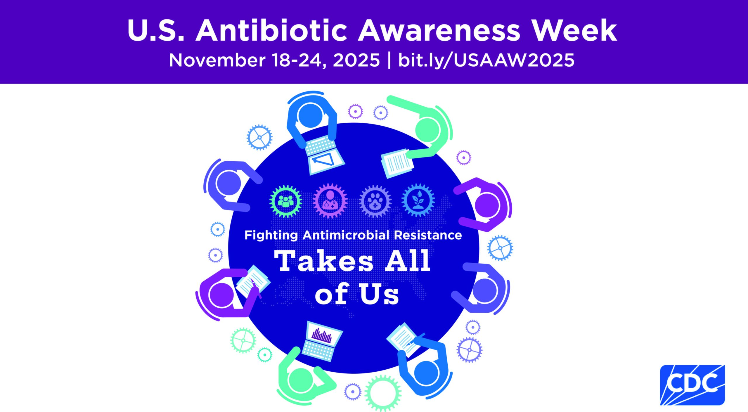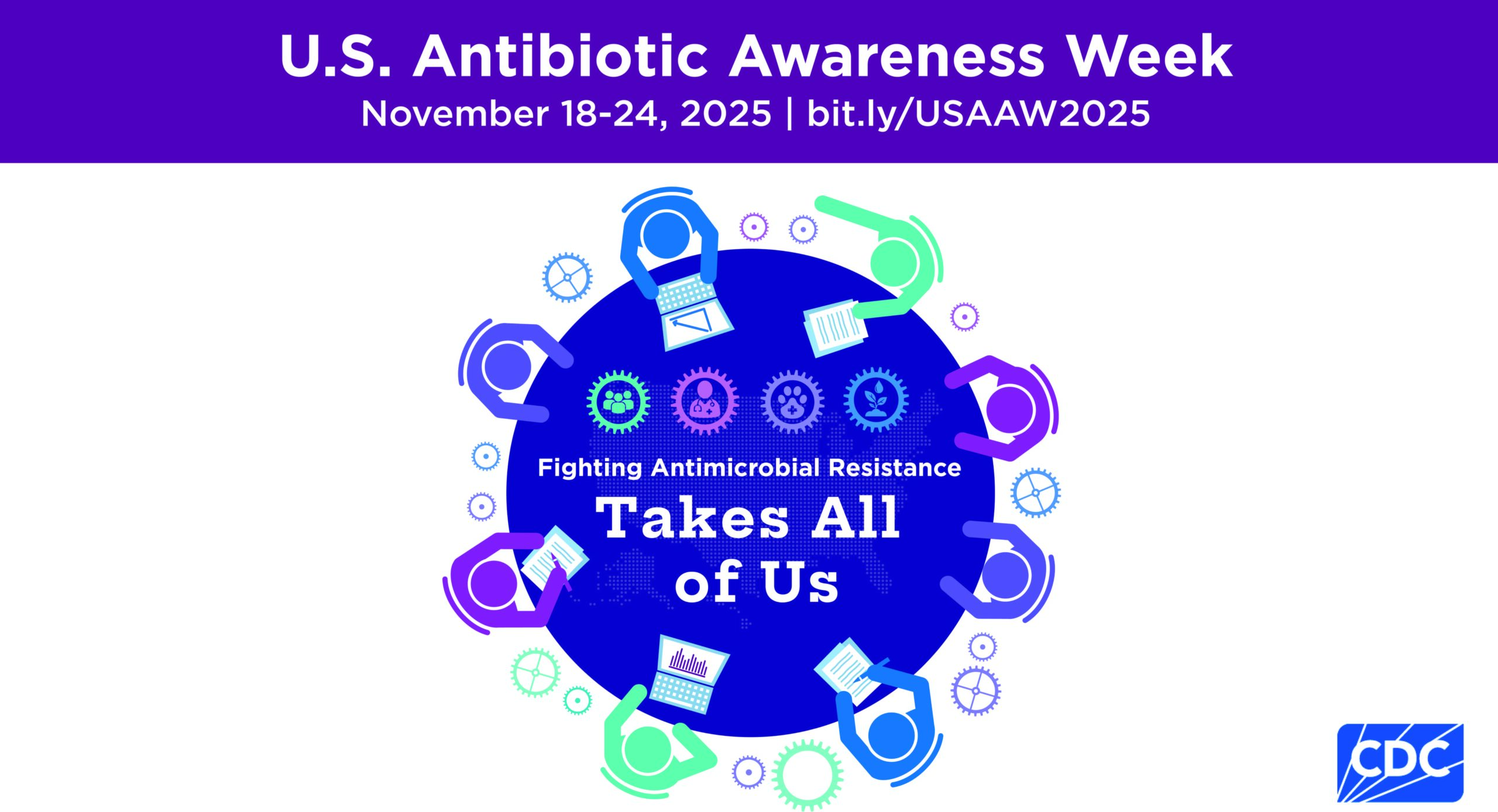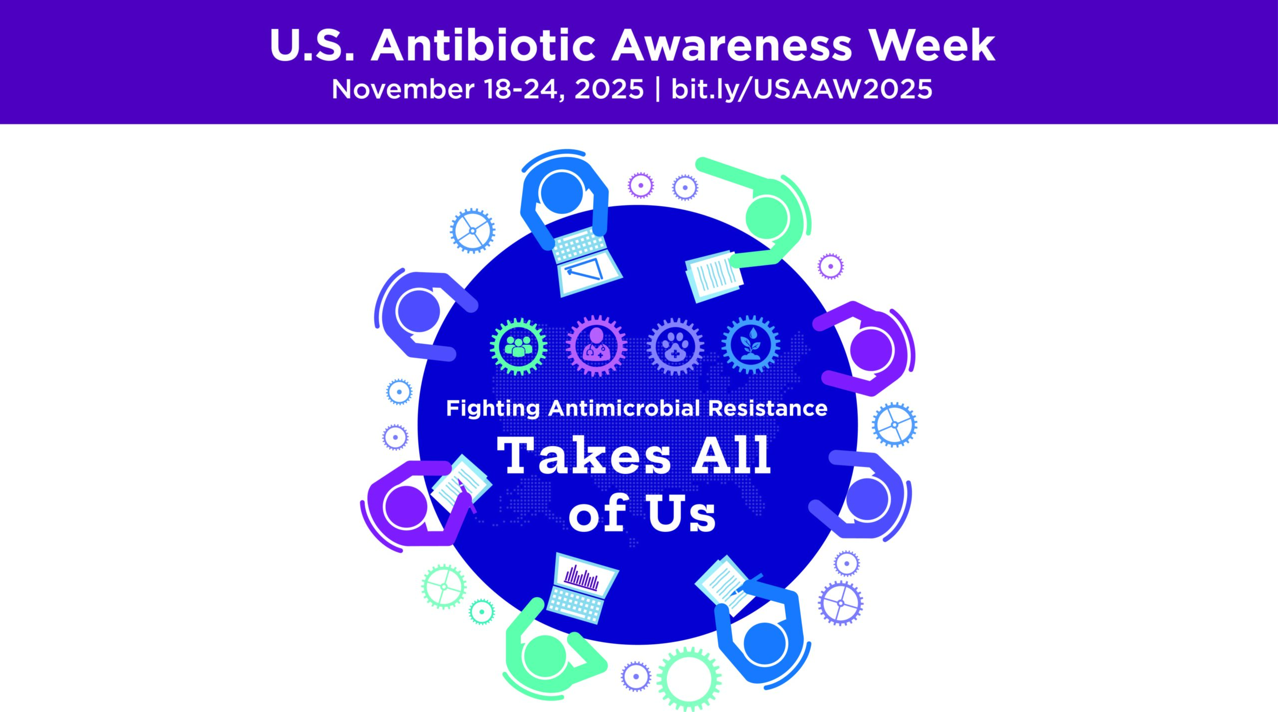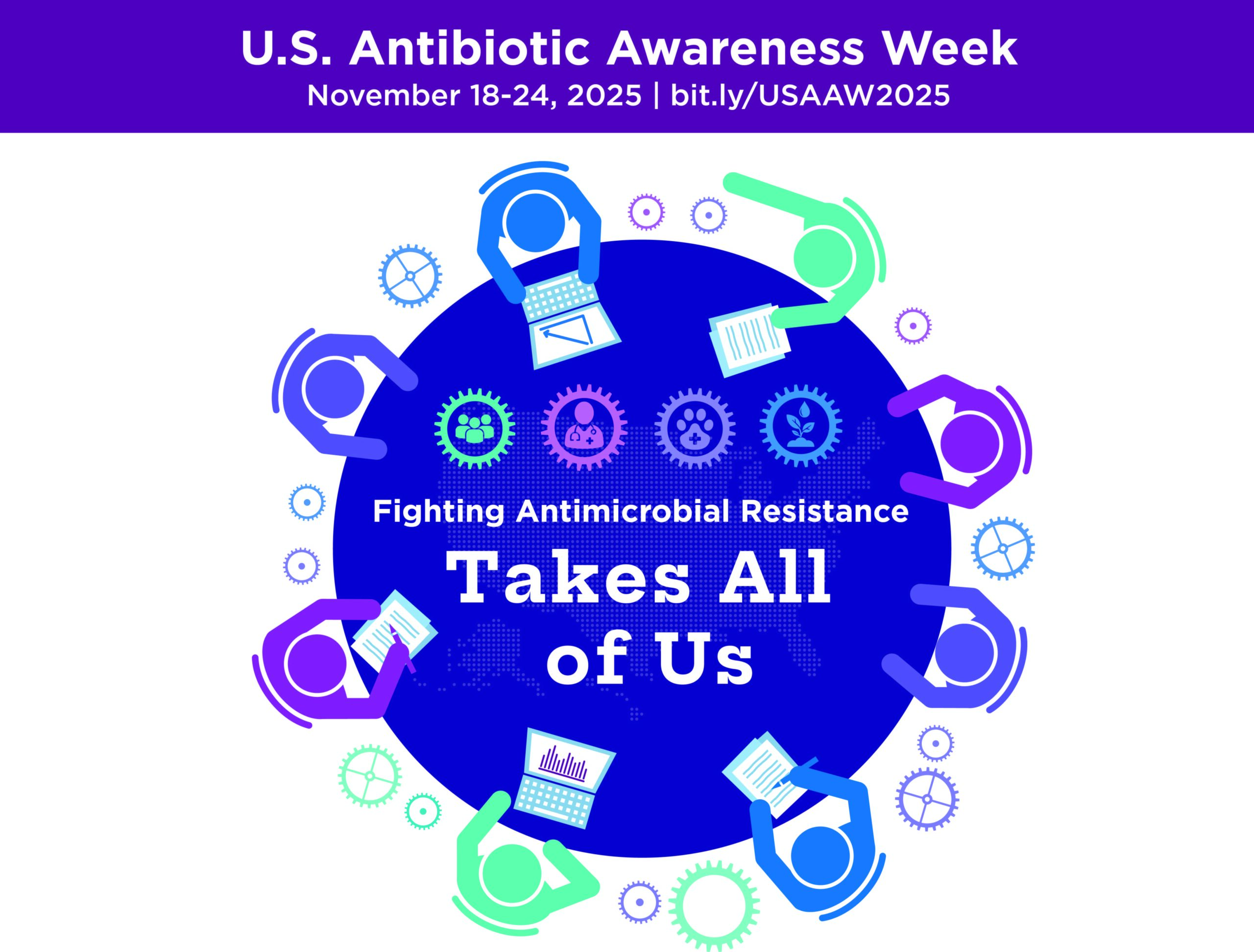 - Promote USAAW across social media and digital platforms with colorful graphics and GIFs representing the collaborative effort needed to fight antimicrobial resistance.