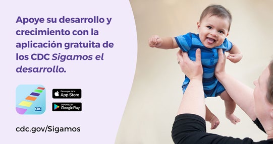 - Hacerle seguimiento al desarrollo del niño con la aplicación GRATUITA de los CDC Sigamos el Desarrollo, disponible tanto en inglés como en español en la App Store y Google Play.