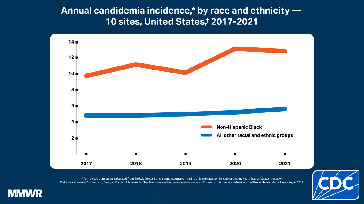 Learn more about candidemia incidence rates by age group and race.