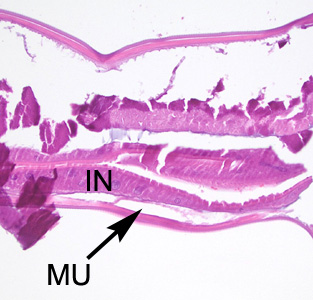 A 23-year-old female with no documented travel history presented with iron deficiency anemia and periodic abdominal pain. Ova-and-parasite (O&P) examinations of stool were negative. A colonoscopy was performed and a worm-like object (Figures A and B) was observed attached to the mucosa of the ascending colon. The object was removed, sent to Pathology, and processed by routine histologic work-up. Figures C–E show what was observed by the pathologist after sectioning and staining with hematoxylin-and-eosin (H&E). Images were captures and sent to the CDC-DPDx for diagnostic assistance. What is your diagnosis? Based on what criteria?