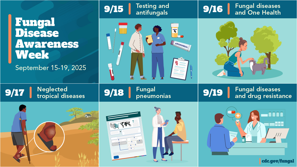 Fungal Disease Awareness Week (FDAW) 2025 is September 15-19. Although fungal diseases underdiagnosed, they are a growing public health concern. Help spread the word about the growing impact of fungal diseases.