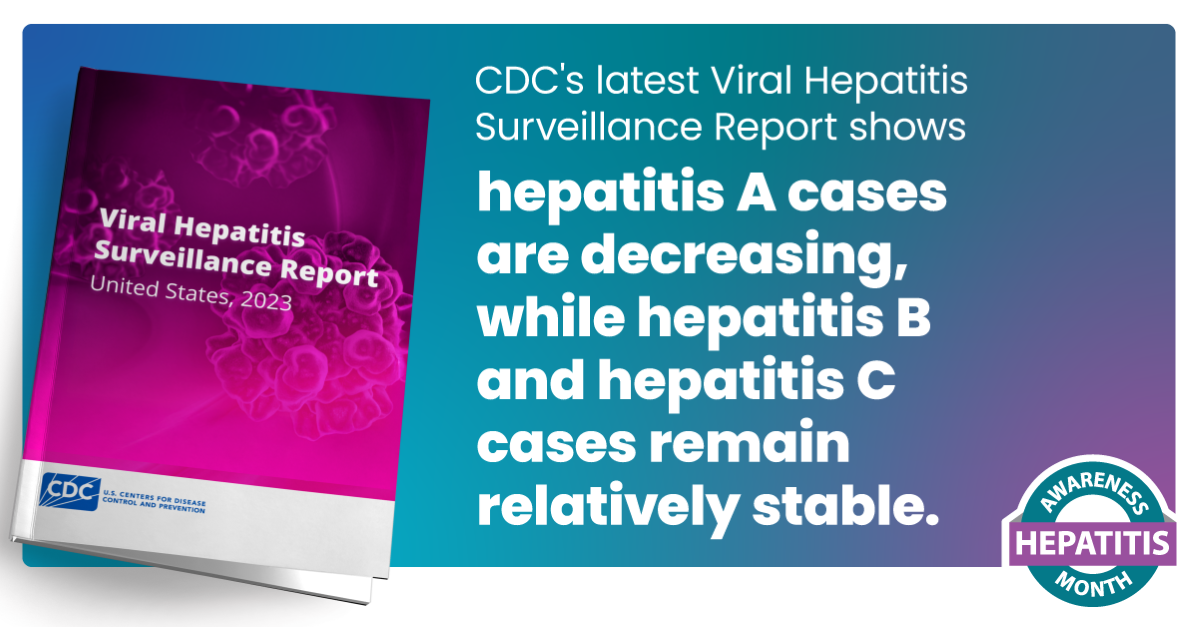 - Looking for the latest viral hepatitis data and trends? Visit CDC's Annual Viral Hepatitis Surveillance Report this Hepatitis Awareness Month to stay informed on hepatitis cases, rates, and more: https://bit.ly/DVH2023ASR