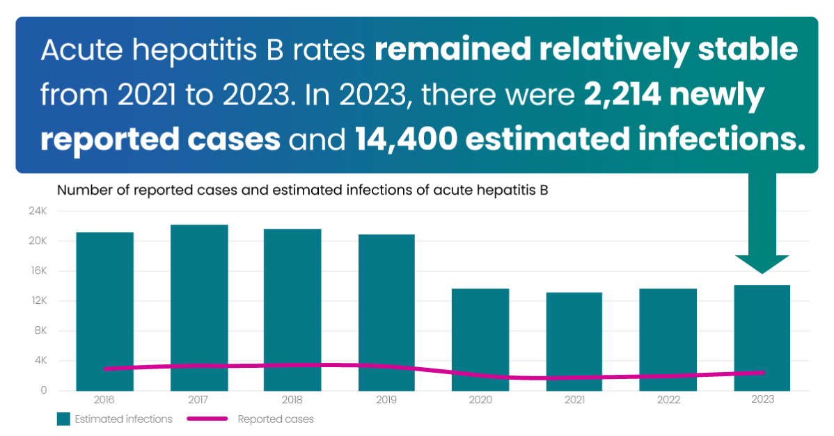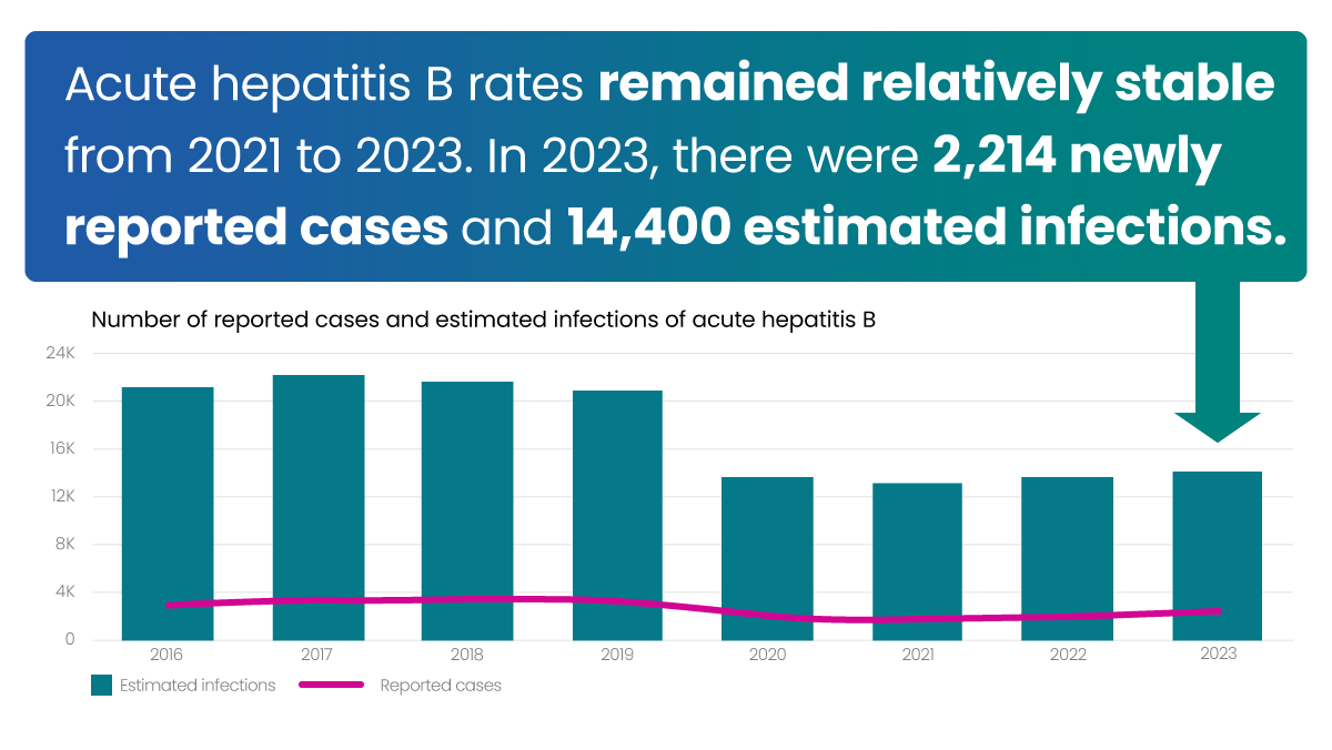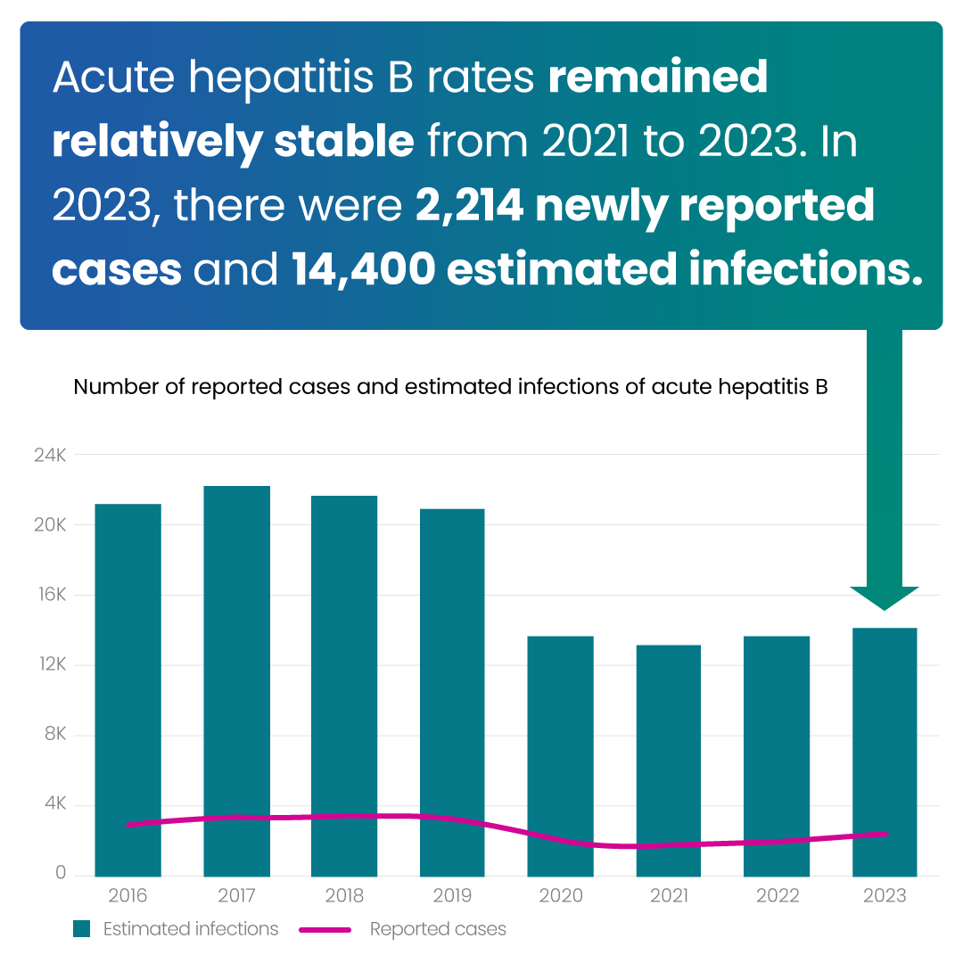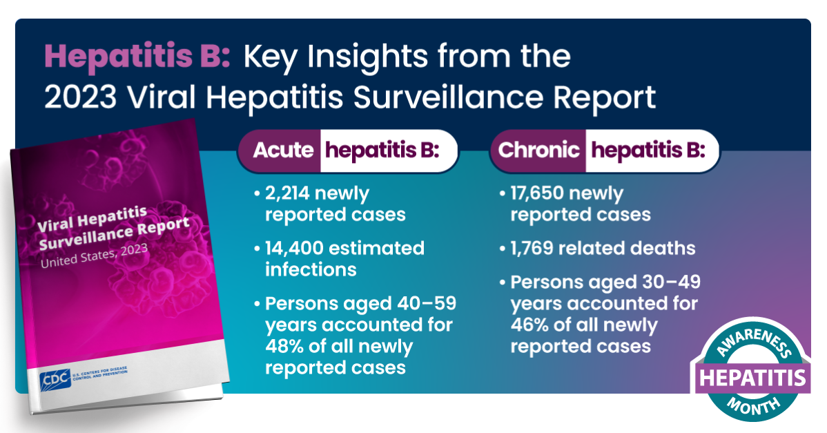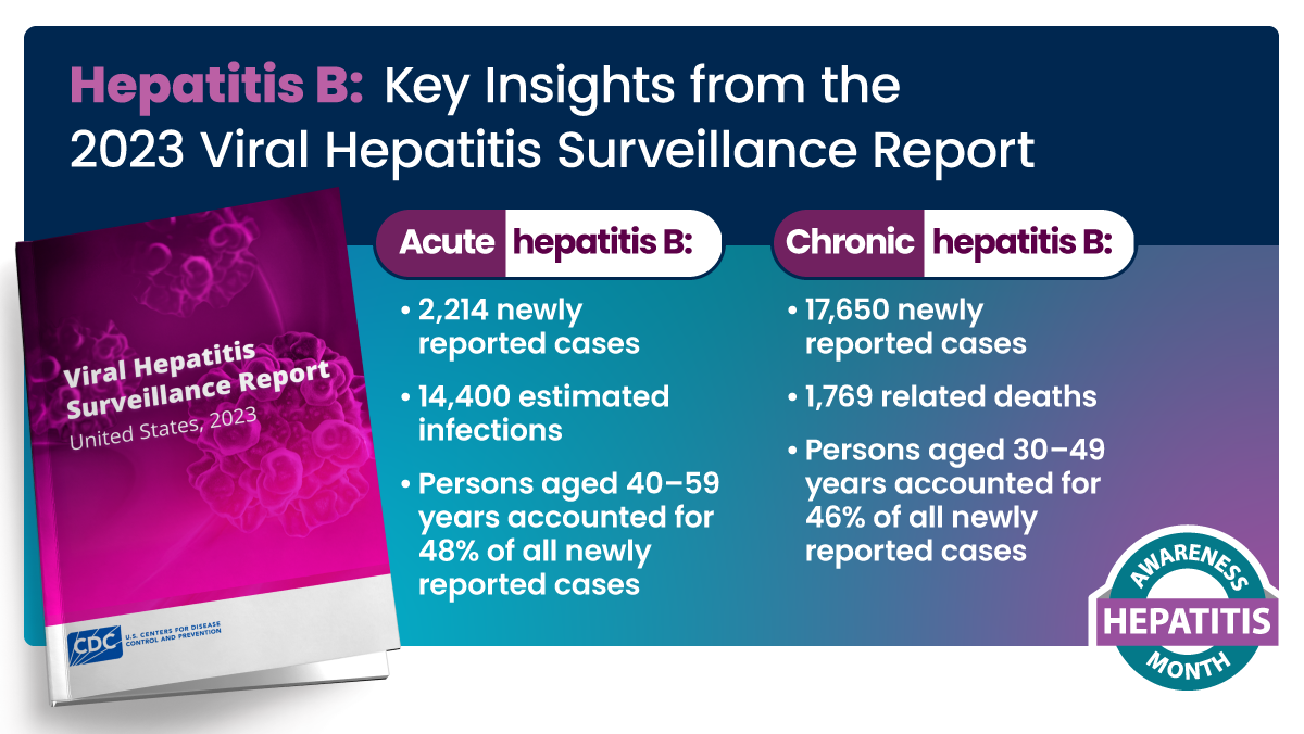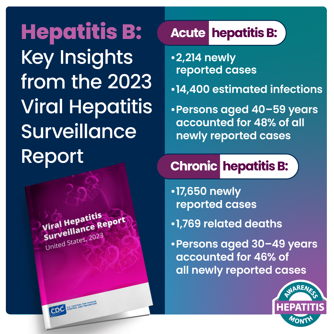 - This Hepatitis Awareness Month, dive into the latest data on #HepatitisB cases, rates, and more. Help spread the word about this vaccine-preventable disease using CDC's 2023 Viral Hepatitis Surveillance Report: https://bit.ly/42XpTWG