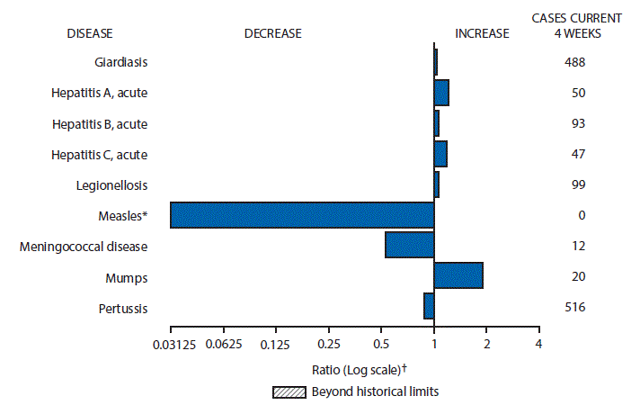TABLE I. Provisional* cases of selected† infrequently reported notifiable diseases (<1,000 cases reported during the preceding year) — United States, week ending February 27, 2016 (8th week) (Export data) |