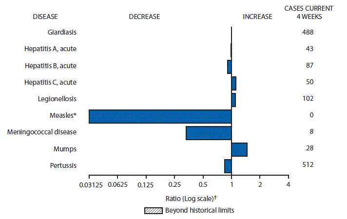 TABLE I. Provisional* cases of selected† infrequently reported notifiable diseases (<1,000 cases reported during the preceding year) — United States, week ending March 12, 2016 (10th week) (Export data) |