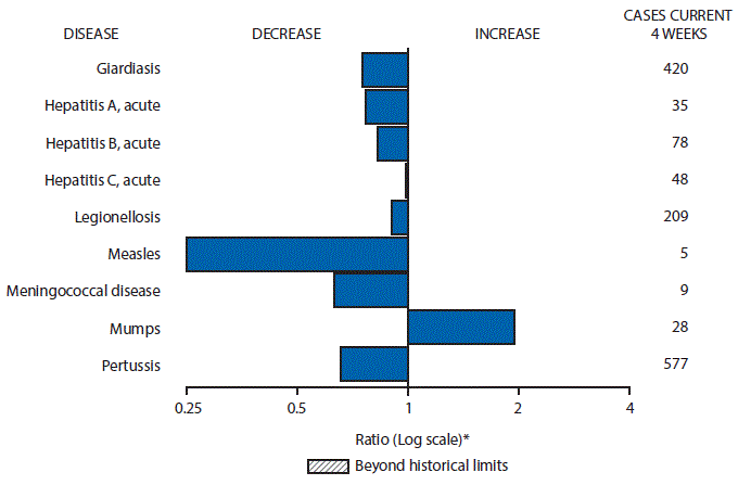 TABLE I. Provisional cases of selected* infrequently reported notifiable diseases (<1,000 cases reported during the preceding year) — United States, week ending July 16, 2016 (28th week)† (Export data) |