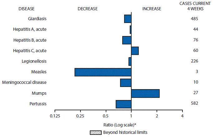 TABLE I. Provisional cases of selected* infrequently reported notifiable diseases (<1,000 cases reported during the preceding year) — United States, week ending July 23, 2016 (29th week)† (Export data) |