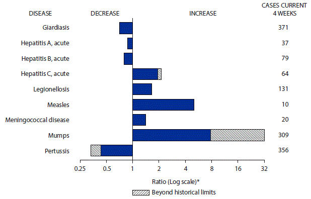 Figure I Selected notifiable disease reports, United States, comparison of provisional 4-week totals February 4, 2017, with historical data
