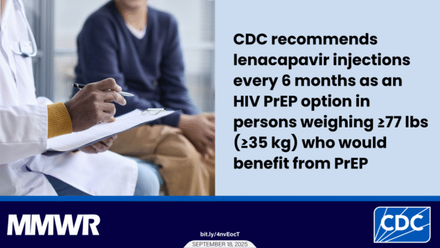 Based on efficacy and safety demonstrated by the two RCTs, the CDC PrEP Guidelines Work Group strongly recommends lenacapavir injections as an HIV PrEP option in persons weighing ≥77 lbs (≥35 kg) who would benefit from PrEP.