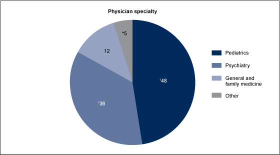 - At 48% of ADHD visits by children aged 4–17 years, a pediatrician provided care and at 36% of visits a psychiatrist provided care (Figure 4).