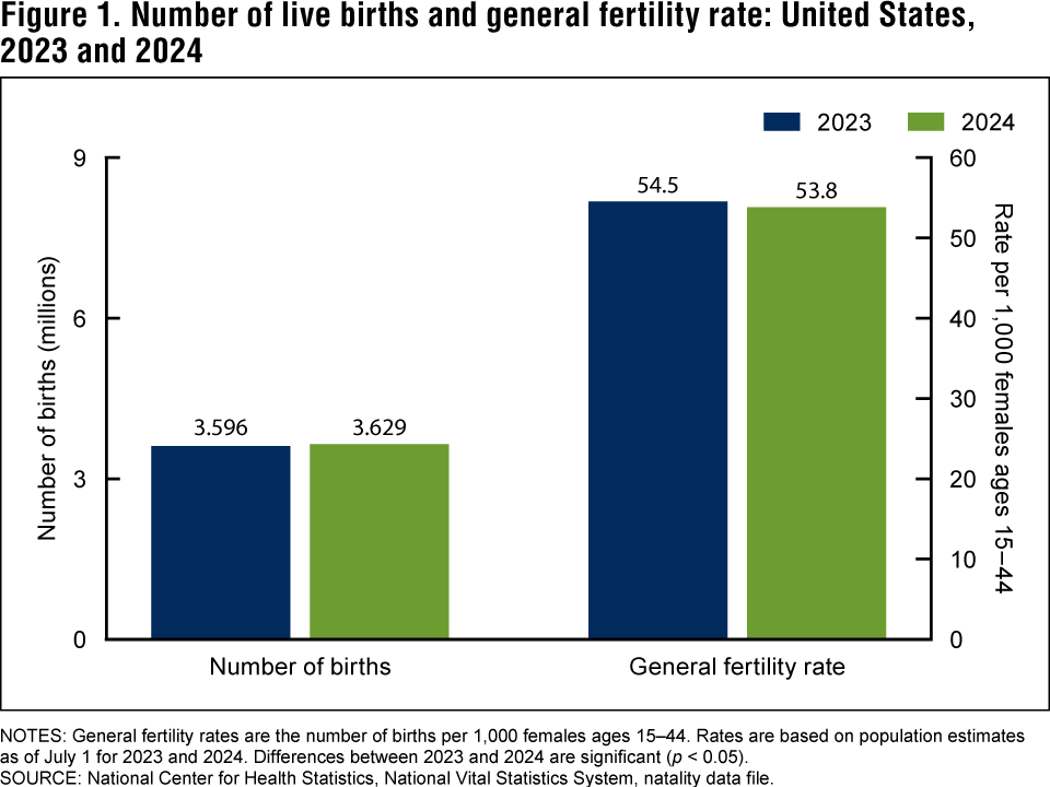 Martin JA, Hamilton BE, Osterman MJK. Births in the United States, 2024. NCHS Data Brief. 2025 Jul;(535):1–8. DOI: https://dx.doi.org/10.15620/cdc/174613.