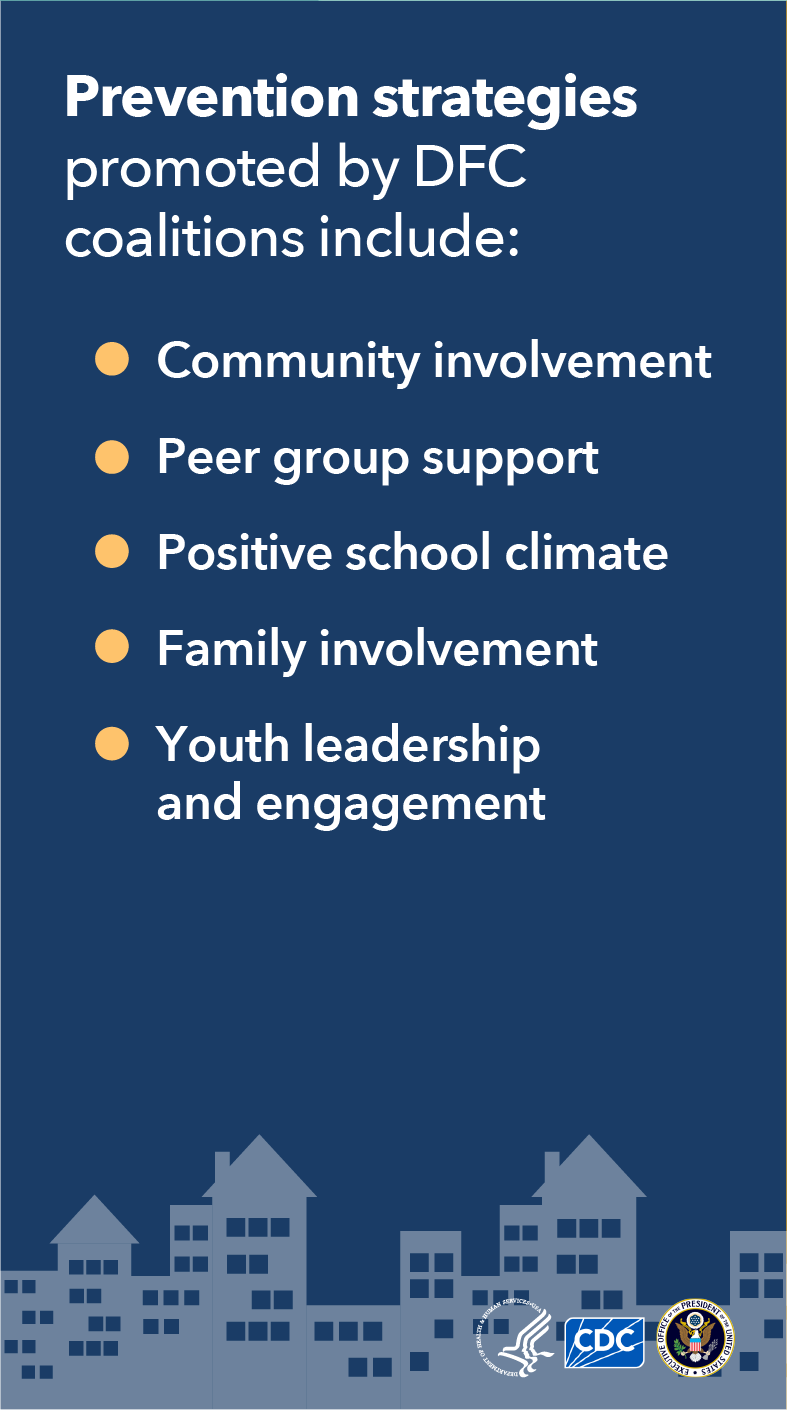 Drug-Free Communities (DFC) coalitions and partners can download and use the infographics on this page to help others understand the program, goals, and prevention strategies and activities.