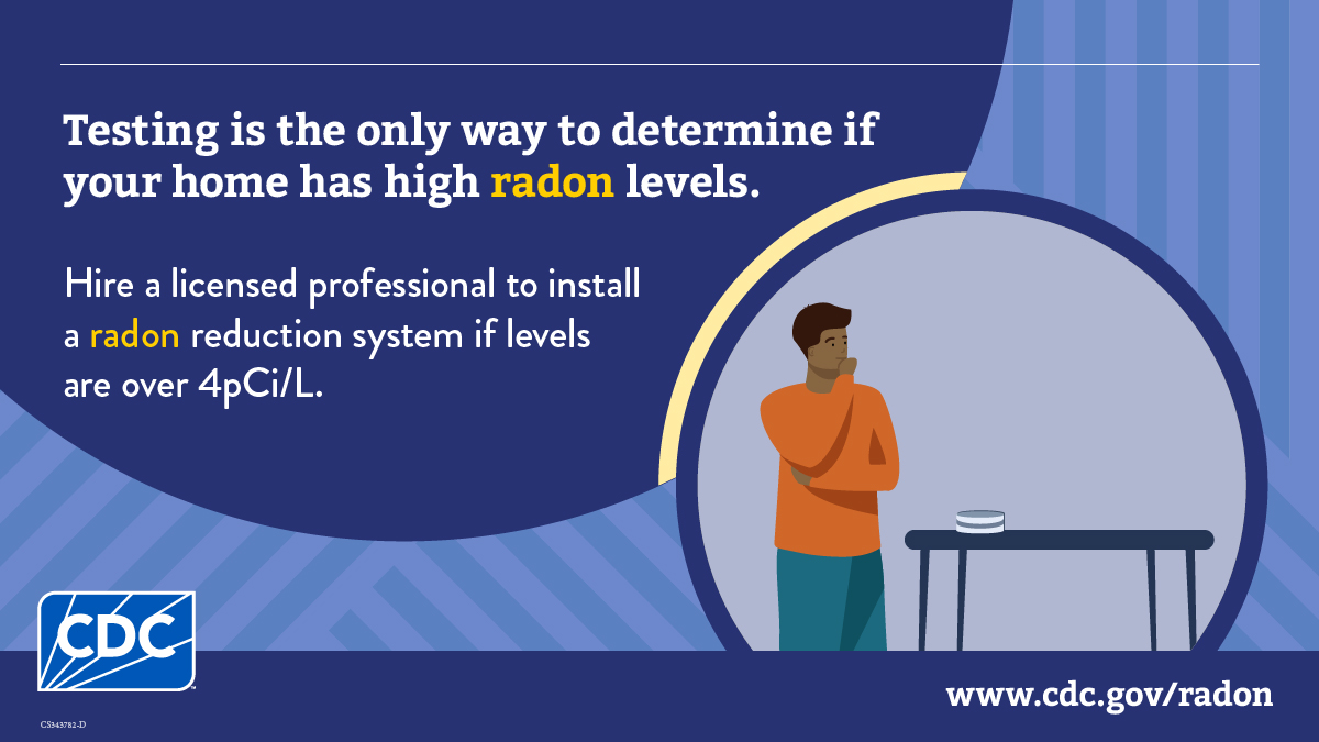 Test your home to find out if you should install a #radon reduction system to protect your household from lung cancer. @EPA recommends installing a radon reduction system for levels 4 pCi/L or higher. https://bit.ly/40aLQBs
