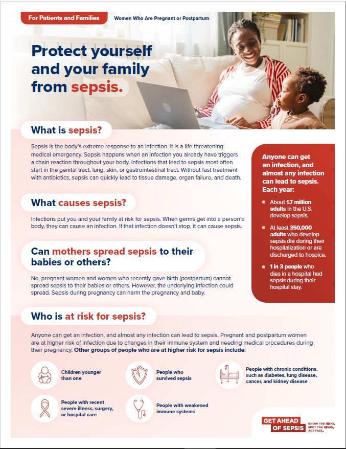 • Share these sepsis resources with women who are pregnant and postpartum.