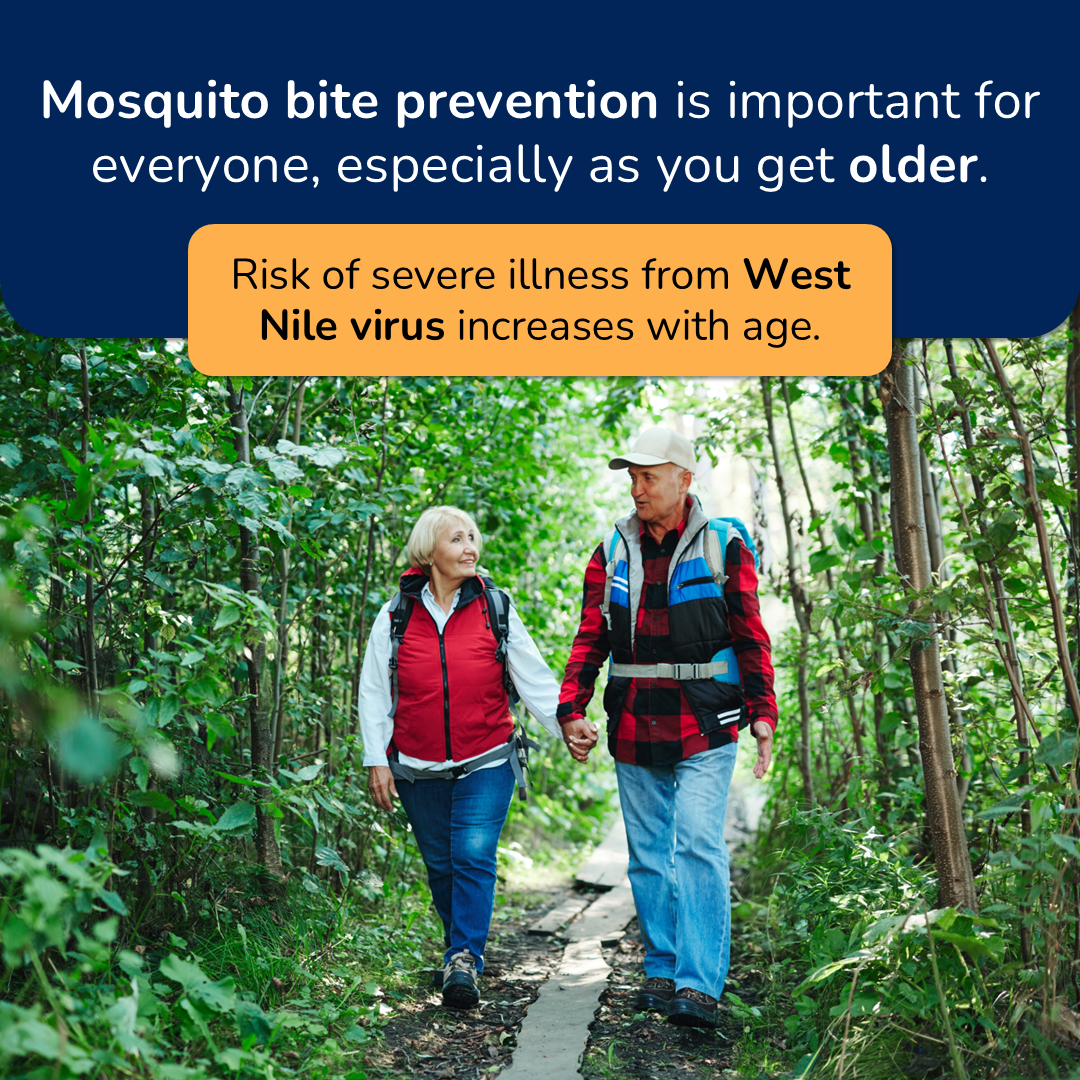 Risk of severe illness and complications from West Nile virus increase with age. Protect yourself and your loved ones: use EPA-registered insect repellent and take other steps to prevent mosquito bites. Preventing West Nile | West Nile Virus | CDC