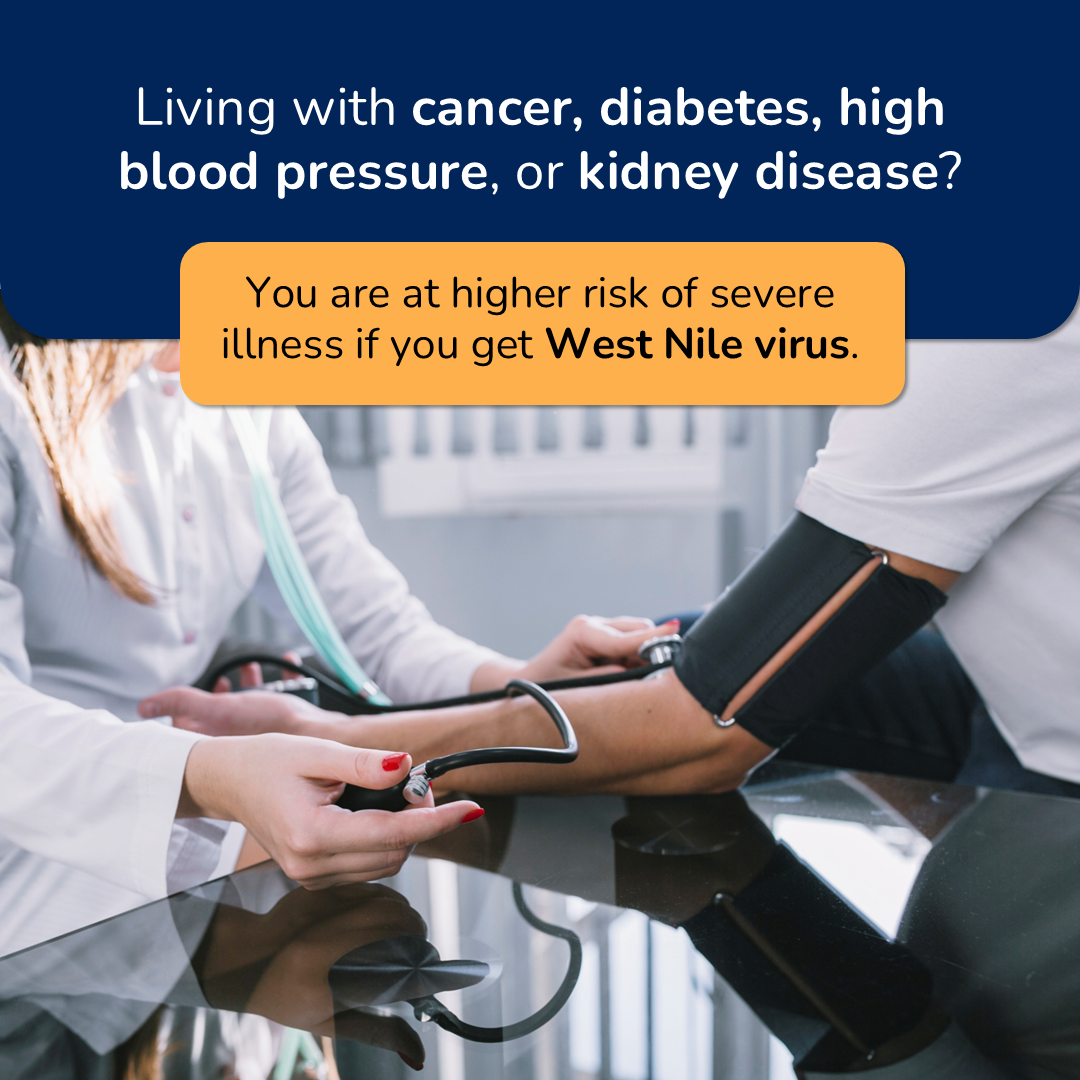 Certain chronic medical conditions increase your risk of severe illness from West Nile virus. Use EPA-registered insect repellent and take other steps to prevent mosquito bites. Preventing West Nile | West Nile Virus | CDC