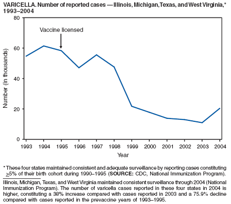 CDC. Outbreak of varicella among vaccinated children---Michigan, 2003. MMWR 2004;53:389--92.