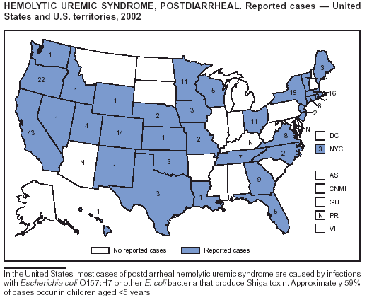Part 1 contains tables showing incidence data for each of the nationally notifiable diseases during 2002.* The tables provide the number of cases reported to CDC for 2002, as well as the distribution of cases by month, geographic location, and