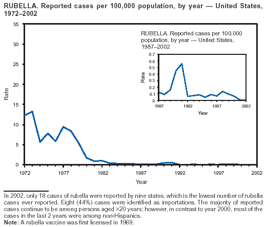 * Because no cases of paralytic poliomyelitis and western equine encephalitis were reported in the United States during 2002, these diseases do not appear in the tables in Part 1.