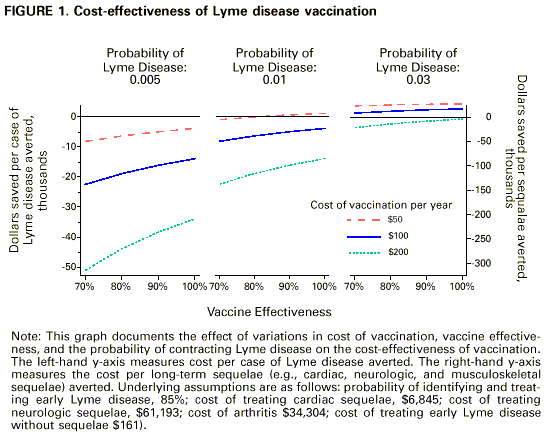Recommendations for the Use of Lyme Disease Vaccine Recommendations of the Advisory Committee on Immunization Practices (ACIP) Summary This report provides recommendations for use of a newly developed recombinant outer-surface protein A (rOspA) Lyme disease vaccine (LYMErix,TM SmithKline Beecham Pharmaceuticals) for persons aged 15-70 years in the United States. The purpose of these recommendations is to provide health-care providers, public health authorities, and the public with guidance regarding the risk for acquiring Lyme disease and the role of vaccination as an adjunct to preventing Lyme disease. The Advisory Committee on Immunization Practices recommends that decisions regarding vaccine use be made on the basis of assessment of individual risk, taking into account both geographic risk and a person's activities and behaviors relating to tick exposure. INTRODUCTION Lyme disease is a tickborne zoonosis caused by infection with the spirochete Borrelia burgdorferi. The number of annually reported cases of Lyme disease in the United States has increased approximately 25-fold since national surveillance began in 1982; during 1993-1997, a mean of 12,451 cases annually were reported by states to CDC (1,2, CDC, unpublished data, 1998). In the United States, the disease is primarily localized to states in the northeastern, mid-Atlantic, and upper north-central regions, and to several areas in northwestern California (1). Lyme disease is a multisystem, multistage, inflammatory illness. In its early stages, Lyme disease can be treated successfully with oral antibiotics; however, untreated or inadequately treated infection can progress to late-stage complications requiring more intensive therapy. The first line of defense against Lyme disease and other tickborne illnesses is avoidance of tick-infested habitats, use of personal protective measures (e.g., repellents and protective clothing), and checking for and removing attached ticks. Early diagnosis and treatment are effective in preventing late-stage complications. Recently, two Lyme disease vaccines have been developed that use recombinant B. burgdorferi lipidated outer-surface protein A (rOspA) as immunogen -- LYMErix,TM SmithKline Beecham Pharmaceuticals, and ImuLyme,TM Pasteur Merieux Connaught. As of publication of this report, only LYMErix has been licensed by the U.S. Food and Drug Administration for use in the United States; therefore, these recommendations apply only to the use of that vaccine. Additional statements will be provided as other Lyme disease vaccines are licensed. Results of a large-scale, randomized, controlled (Phase III) trial of safety and efficacy of LYMErix in persons aged 15-70 years residing in disease-endemic areas of the northeastern and north-central United States indicate that the vaccine is safe and efficacious when administered on a three-dose schedule of 0, 1, and 12 months (3,4). Information regarding vaccine safety and efficacy beyond the transmission season immediately after the third dose is not available. Thus, the duration of protective immunity and need for booster doses beyond the third dose are unknown. CLINICAL FEATURES OF LYME DISEASE Clinical Description Most often, Lyme disease is evidenced by a characteristic rash (erythema migrans) accompanied by nonspecific symptoms (e.g., fever, malaise, fatigue, headache, myalgia, and arthralgia) (5-7). The incubation period from infection to onset of erythema migrans is typically 7-14 days but can be as short as 3 days or as long as 30 days. Some infected persons have no recognized illness (i.e., asymptomatic infection determined by serologic testing), or they manifest only nonspecific symptoms (e.g., fever, headache, fatigue, and myalgia). Lyme disease spirochetes disseminate from the site of inoculation by cutaneous, lymphatic, and bloodborne routes. The signs of early disseminated infection usually occur from days to weeks after the appearance of a solitary erythema migrans lesion. In addition to multiple or secondary erythema migrans lesions, early disseminated infection can be manifested as disease of the nervous system, the musculoskeletal system, or the heart (5-7). Early neurologic manifestations include lymphocytic meningitis; cranial neuropathy, especially facial nerve palsy; and radiculoneuritis. Musculoskeletal manifestations can include migratory joint and muscle pains with or without objective signs of joint swelling. Cardiac manifestations are rare but can include myocarditis and transient atrioventricular block of varying degree. B. burgdorferi infection in the untreated or inadequately treated patient can progress to late-disseminated disease from weeks to months after infection (5-7). The most common objective manifestation of late-disseminated Lyme disease is intermittent swelling and pain of one or some joints, usually large, weight-bearing joints (e.g., the knee). Some patients experience chronic axonal polyneuropathy, or encephalopathy, the latter usually manifested by cognitive disorders, sleep disturbance, fatigue, and personality changes. Infrequently, Lyme disease morbidity can be severe, chronic, and disabling (8,9). An ill-defined post-Lyme disease syndrome occurs in some persons after treatment for Lyme disease (10-12). Lyme disease is rarely, if ever, fatal. Diagnosis The diagnosis of Lyme disease is based primarily on clinical findings, and treating patients with early disease solely on the basis of objective signs and a known exposure is often appropriate (13). Serologic testing can, however, provide valuable supportive diagnostic information in patients with endemic exposure and objective clinical findings that indicate later-stage disseminated Lyme disease (13). When serologic testing is indicated, CDC recommends testing initially with a sensitive first test, either an enzyme-linked immunosorbent assay (ELISA) or an indirect fluorescent antibody test, followed by testing with the more specific Western immunoblot (WB) te