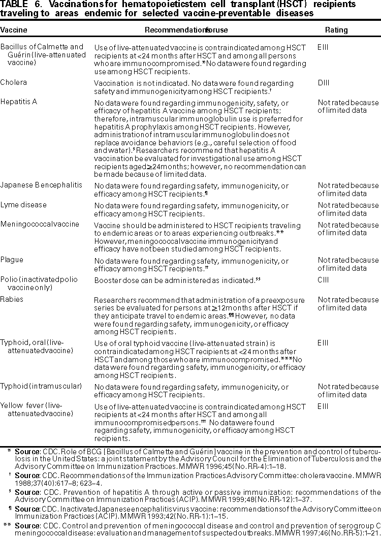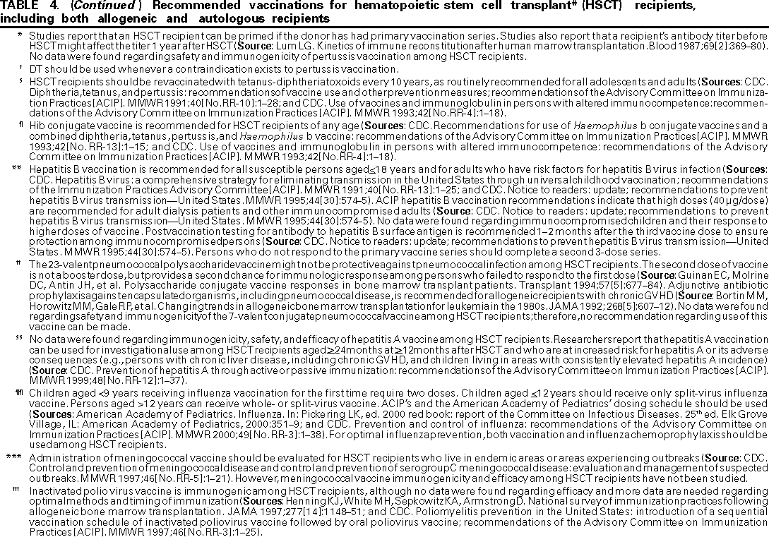 5. Henning KJ, White MH, Sepkowitz KA, Armstrong D. National survey of immunization practices following allogeneic bone marrow transplantation. JAMA 1997;277(14): 1148--51.