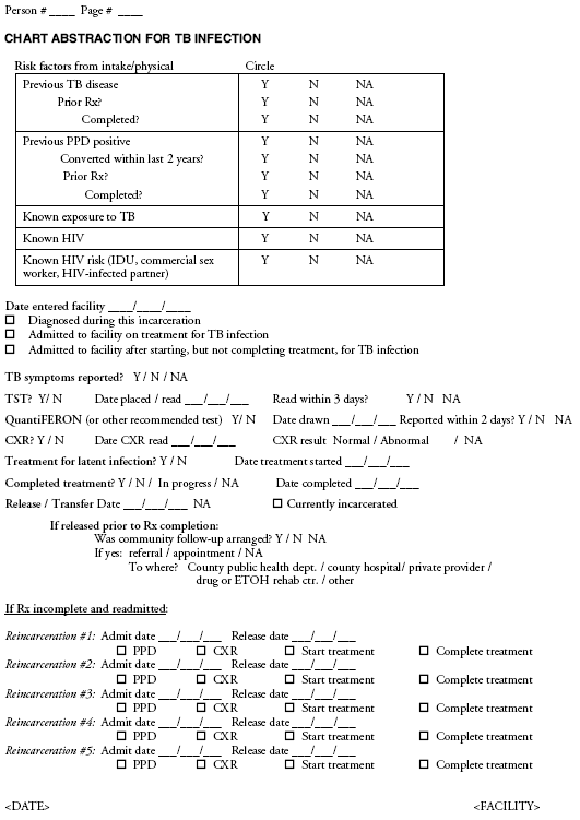 isolation rooms). A TB infection-control plan should include surveillance of inmates and correctional staff.