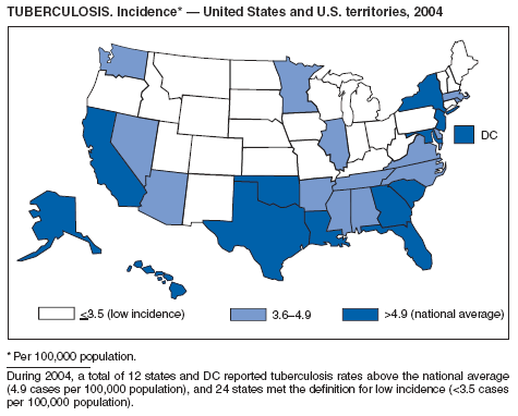 CDC. Trends in tuberculosis---United States, 2004. MMWR 2005;54:245--9.