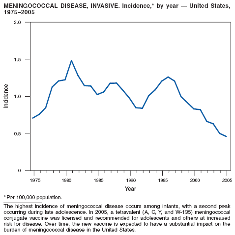 The Highlights section presents noteworthy epidemiologic and prevention information for 2005 for selected diseases and additional information to aid in the interpretation of surveillance and disease-trend data. Part 1 contains tables showing incidence data for the nationally notifiable infectious diseases during 2005.* The tables provide the number of cases reported to CDC for 2005 as well as the distribution of cases by month, geographic location, and the patient's demographic characteristics (age, sex, race, and ethnicity). Part 2 contains graphs and maps that depict summary data for certain notifiable infectious diseases described in tabular form in Part 1. Part 3 contains tables that list the number of cases of notifiable diseases reported to CDC since 1973. This section also includes a table enumerating deaths associated with specified notifiable diseases reported to CDC's National Center for Health Statistics (NCHS) during 2002--2003. The Selected Reading section presents general and disease-specific references for notifiable infectious diseases. These references provide additional information on surveillance and epidemiologic concerns, diagnostic concerns, and disease-control activities.