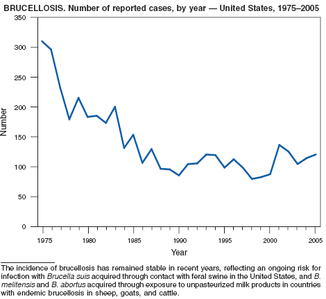 The Summary of Notifiable Diseases --- United States, 2005 contains the official statistics, in tabular and graphic form, for the reported occurrence of nationally notifiable infectious diseases in the United States for 2005. Unless otherwise noted, the data are final totals for 2005 reported as of June 30, 2006. These statistics are collected and compiled from reports sent by state health departments to the National Notifiable Diseases Surveillance System (NNDSS), which is operated by CDC in collaboration with the Council of State and Territorial Epidemiologists (CSTE). The Summary is available at http://www.cdc.gov/mmwr/summary.html. This site also includes publications from previous years.