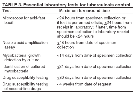 Educating Patients and Communities at High Risk Education of patients by clinicians, TB program staff, and trusted community members promotes acceptance and adherence to authoritative advice about controlling and preventing TB. Such education can influence patients' decision-making about whether to accept and complete treatment for LTBI (202). Because cultural and health beliefs might act as barriers to effective control of TB (18,19), an increasing need exists for education targeted at populations at high risk (19). TB-control programs should enlist community-based organizations and other key informants to discover the health beliefs, norms, and values of communities at high risk in their jurisdictions (202,203). Professional associations and academic institutions (including schools of medicine, public health, and nursing) will be valuable partners in developing an understanding of the health perceptions of these populations. Education materials should be developed with input from the target audience to ensure that they are culturally and linguistically appropriate (203,204). The Strategic Plan for TB Training and Education In 1997, CDC funded a project to develop a Strategic Plan for Tuberculosis Training and Education (the Strategic Plan) that provided guidance to agencies and organizations in the United States that offer TB training and education for public- and private-sector providers. The Strategic Plan specified critical areas requiring attention, including 1) the need for culturally competent programs and materials, 2) effective methods and technologies, 3) collaboration and cooperation among training and education partners outside TB-control programs, and 4) adequate funding for training and education efforts. Other Resources for TB Training and Education Substantial progress has been made in developing and disseminating resources for TB training and education. CDC and national TB centers, NTCA, regional controllers associations (e.g., the Northeast Tuberculosis Training Consortium), state and local health departments, and the National Laboratory Training Network have all conducted education programs or developed training and education materials. In 2001, as stipulated by the Strategic Plan, the Tuberculosis Education and Training Network was established. The network is coordinated by CDC and includes educators in local, state, and territorial health agencies. CDC has also developed the Tuberculosis Information CD-ROM, Version 3, and the Tuberculosis Education and Training Resource Guide; these products are designed to enhance awareness and accessibility of resources (available at http://www.cdc.gov/nchstp/tb/default.htm) for TB education and training. The establishment in 2004 of the National Tuberculosis Curriculum Coordinating Center at the University of California at San Diego by the National Heart Lung and Blood Institute signals a commitment by the National Institutes of Health (NIH) to provide basic TB education for health-care students and providers. Professional societies and specialty boards are means for reaching private medical providers. Including TB as a subject in state medical society programs, hospital grand rounds, and medical specialty board examinations would be a valuable resource for providers serving populations at low risk. New linkages should be established to reach providers serving populations at high risk (e.g., foreign-born, homeless, and HIV-infected persons). For example, the AIDS Education and Training Centers funded by the Health Resources and Services Administration are a resource for reaching HIV/AIDS providers, and foreign physicians' associations and community-based organizations are potential partners for reaching international medical graduates and health-care providers of foreign-born persons. Laboratory Services for Optimal TB ControlThe diagnosis of TB, management of patients with the disease, and public health control services rely on accurate laboratory tests. Laboratory services are an essential component of effective TB control, providing key information to clinicians (for patient care) and public health agencies (for control services). Up to 80% of all initial TB-related laboratory work (e.g., smear and culture inoculation) is performed in hospitals, clinics, and independent laboratories outside the public health system, whereas >50% of species identification and drug susceptibility testing is performed in public health laboratories (205). Thus, effective TB control requires a network of public and private laboratories to optimize laboratory testing and the flow of information. Public health laboratorians, as a component of the public health sector with a mandate for TB control, should take a leadership role in developing laboratory networks and in facilitating communication among laboratorians, clinicians, and TB controllers. Role of Public Health Laboratories Public health laboratories should ensure that clinicians and public health agencies within their jurisdictions have ready access to reliable laboratory tests for diagnosis and treatment of TB (206). Specific tasks to ensure the availability, accessibility, and quality of essential laboratory services are 1) assessment of the cost and availability of TB laboratory services and 2) development of strategic plans to implement and maintain a systems approach to TB testing (207). In this process, public health laboratories should assess and monitor the competence of laboratories that perform any testing related to the diagnosis, management, and control of TB within their jurisdictions; develop guidelines for reporting and tracking of laboratory results; and educate laboratory staff members, health-care providers, and public health officials about available laboratory tests, new technologies, and indications for their use. For example, public health laboratories should lead the discussion on the costs, logistics requirements (e.g., collection and transport of clinical specimens wit