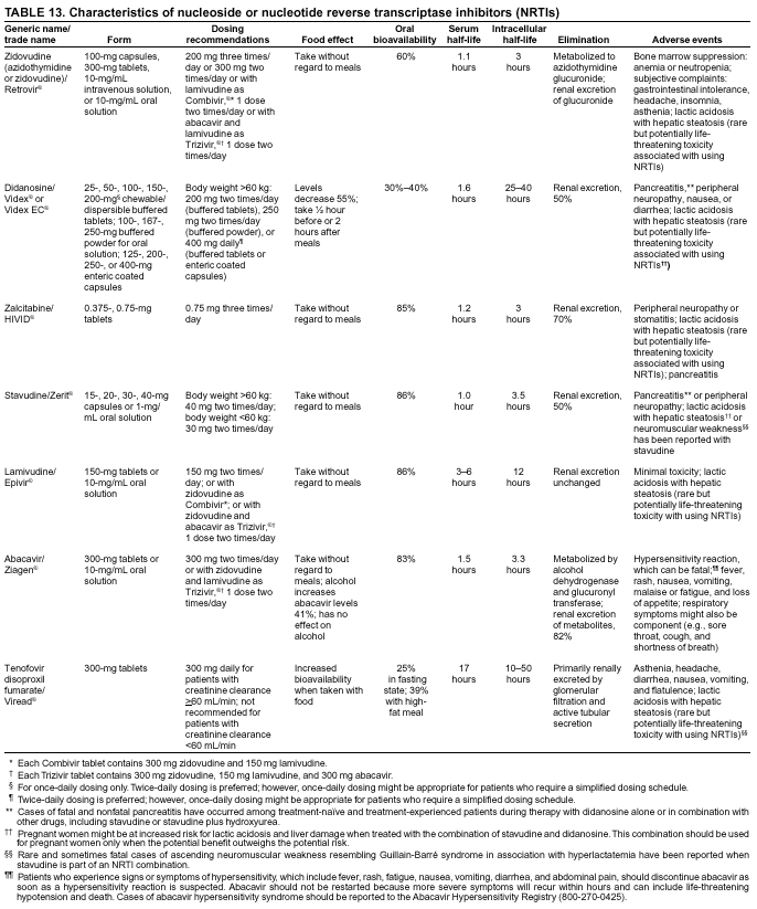 Note: Data regarding use of hydroxyurea in combination with antiretroviral agents are limited; therefore, this report does not include recommendations regarding its use in treating persons infected with human immunodeficiency virus.