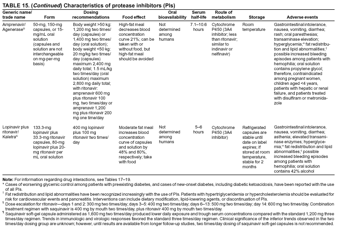 Regimens should be simplified as much as possible by reducing the number of pills and therapy frequency and by minimizing drug interactions and side effects. For certain patients, problems with complex regimens are of lesser importance, but evidence supports simplified regimens with reduced pill numbers and dose frequencies (78,79). With the effective options for initial therapy noted in this report and the observed benefit of less frequent dosing, twice-daily dosing of HAART regimens is feasible for the majority of patients. Regimens should be chosen after review and discussion of specific food requirements and patient understanding and agreement to such restrictions. Regimens requiring an empty stomach multiple times daily might be difficult for patients with a wasting disorder, just as regimens requiring high fat intake might be difficult for patients with lactose intolerance or fat aversion. However, an increasing number of effective regimens do not have specific food requirements.