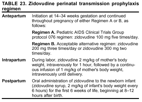 Recommendations for resistance testing during pregnancy are the same as for nonpregnant women; acute HIV infection, virologic failure while on an antiretroviral regimen, or suboptimal viral load suppression after initiation of antiretroviral therapy are all appropriate indications for resistance testing. If an HIV-positive pregnant woman is taking an antiretroviral regimen that does not include zidovudine, or if zidovudine was discontinued because of maternal drug resistance, intrapartum and neonatal zidovudine prophylaxis should be administered to prevent mother-to-child HIV transmission (see Considerations for Antiretroviral Therapy Among HIV-Infected Pregnant Women). Not all of zidovudine's activity in preventing mother-to-child HIV transmission can be accounted for by its effect on maternal viral load (20); furthermore, preliminary data indicate that the rate of perinatal transmission after zidovudine prophylaxis might not differ between those with and without zidovudine-resistance mutations (21,22). Studies are needed to determine the best strategy to prevent mother-to-child HIV transmission in the presence of zidovudine resistance.