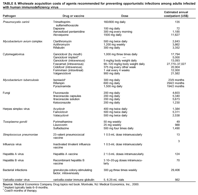 8. Table 8 Costs of agents recommended for preventing OIs among adults with HIV infection;