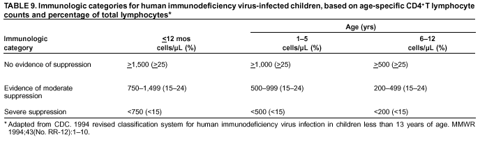 Children. Children born to HIV-infected mothers should be administered prophylaxis with TMP-SMZ beginning at age 4--6 weeks (44) (AII). Prophylaxis should be discontinued for children who are subsequently determined not to be infected with HIV. HIV-infected children and children whose infection status remains unknown should continue to receive prophylaxis for the first year of life. Need for subsequent prophylaxis should be determined on the basis of age-specific CD4+ T lymphocyte count thresholds (Table 11) (AII). The safety of discontinuing prophylaxis among HIV-infected children receiving HAART has not been studied extensively.