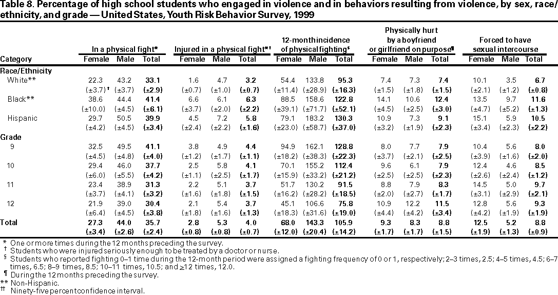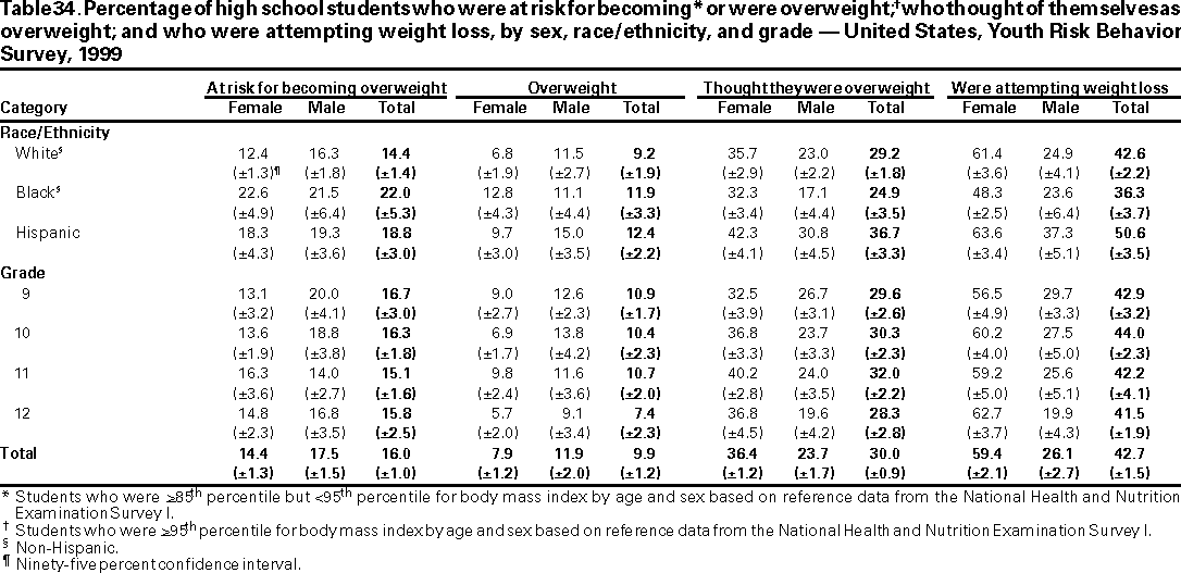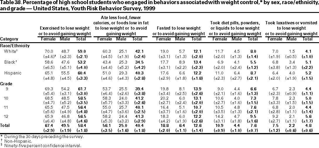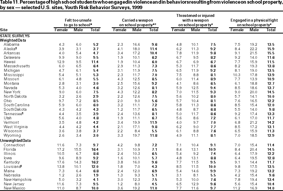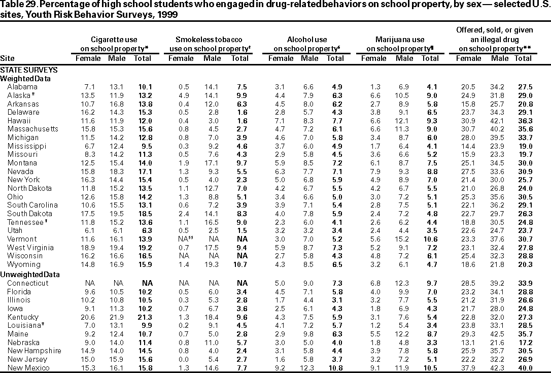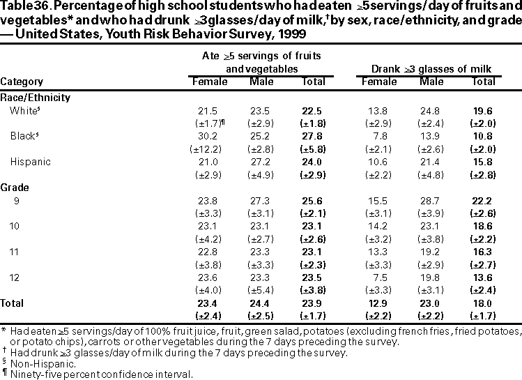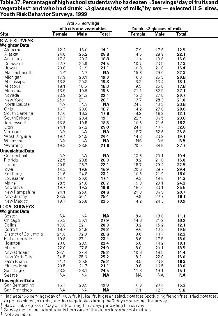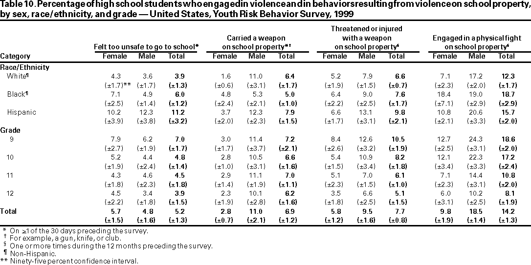 Youth Risk Behavior Surveillance --- United States, 1999