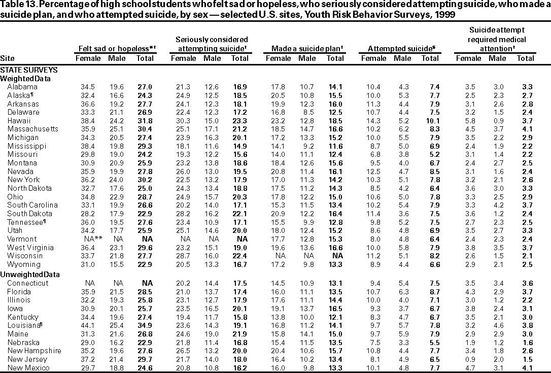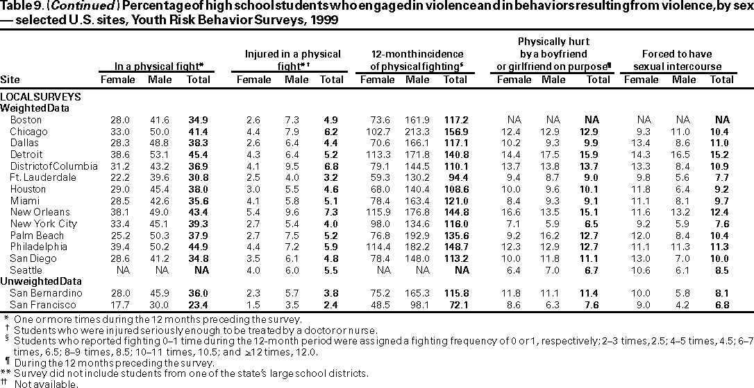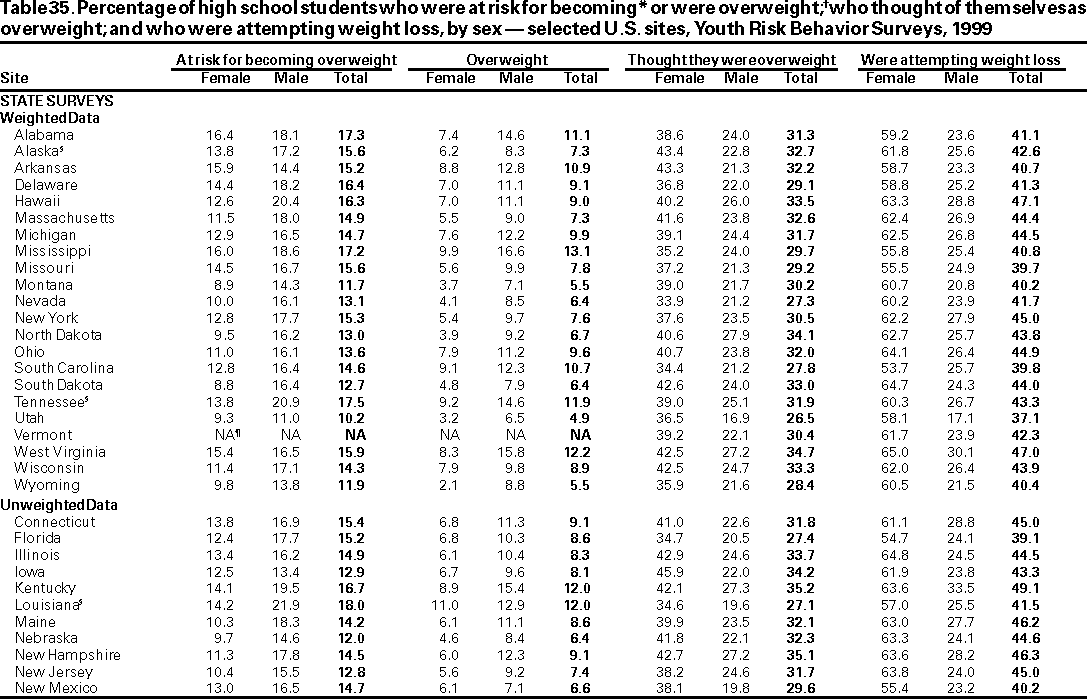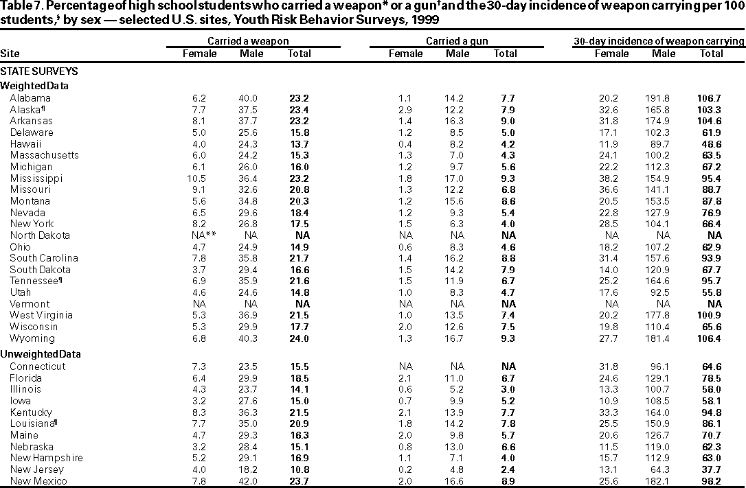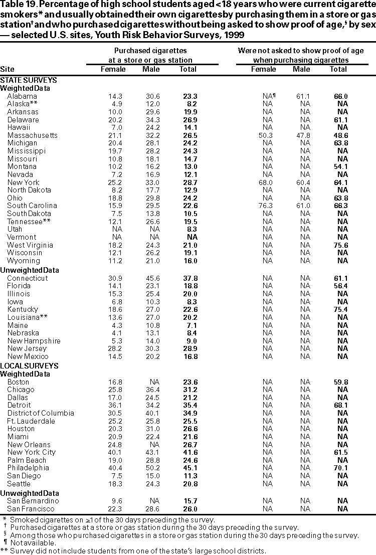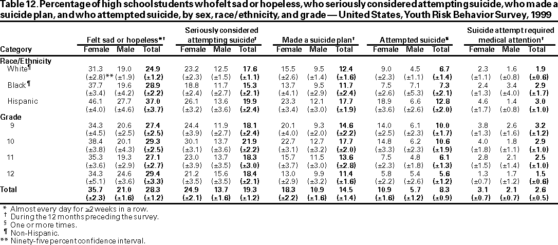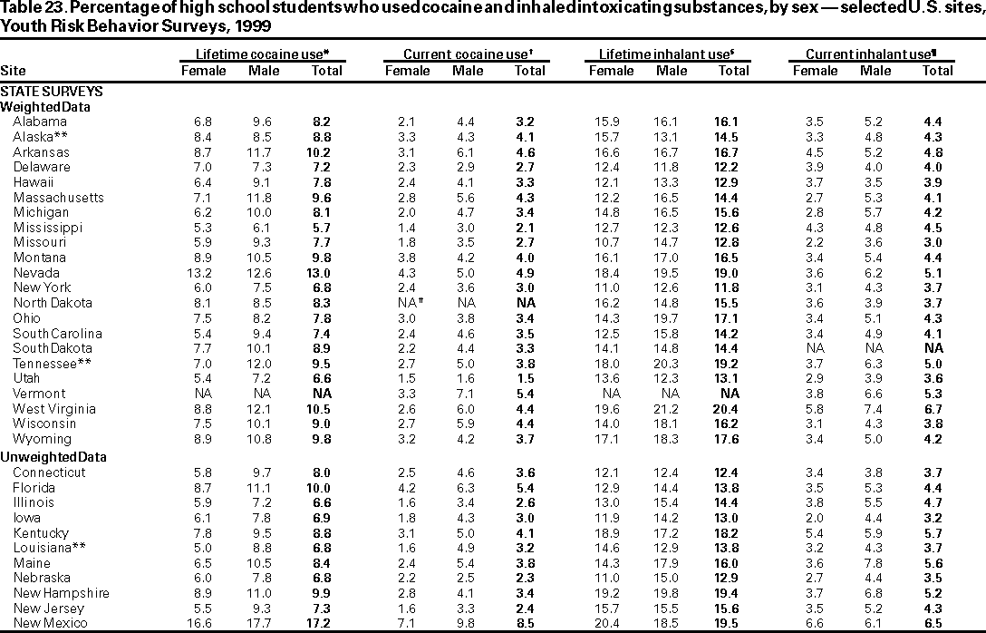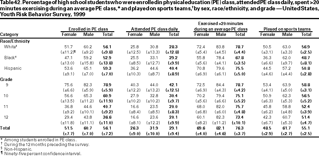Youth Risk Behavior Surveillance --- United States, 1999