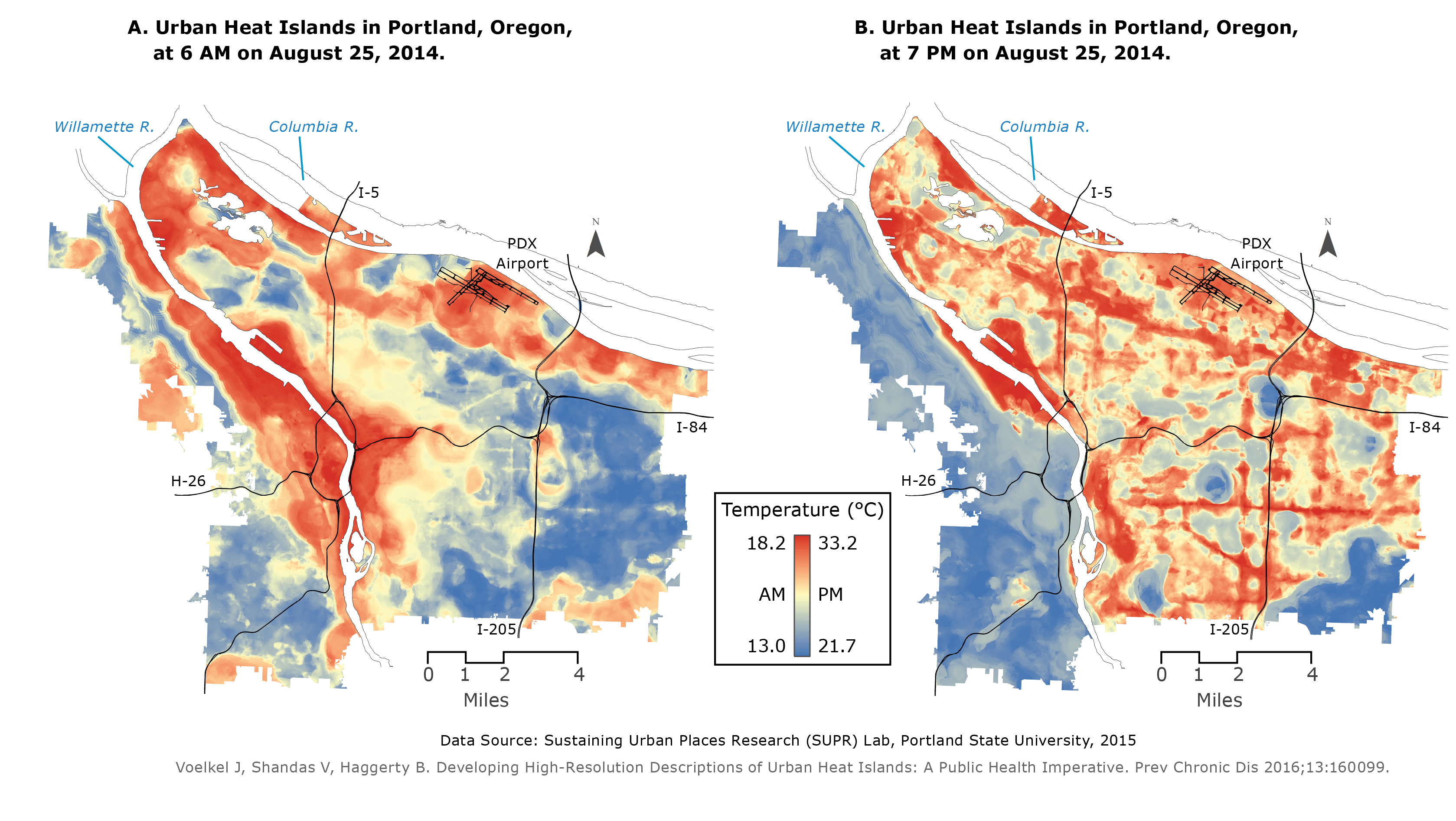 Suggested citation for this article: Voelkel J, Shandas V, Haggerty B. Developing High-Resolution Descriptions of Urban Heat Islands: A Public Health Imperative. Prev Chronic Dis 2016;13:160099. DOI: http://dx.doi.org/10.5888/pcd13.160099.