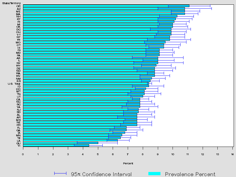 Adult Self-Reported Current Asthma Prevalence by State or Territory: BRFSS 2009