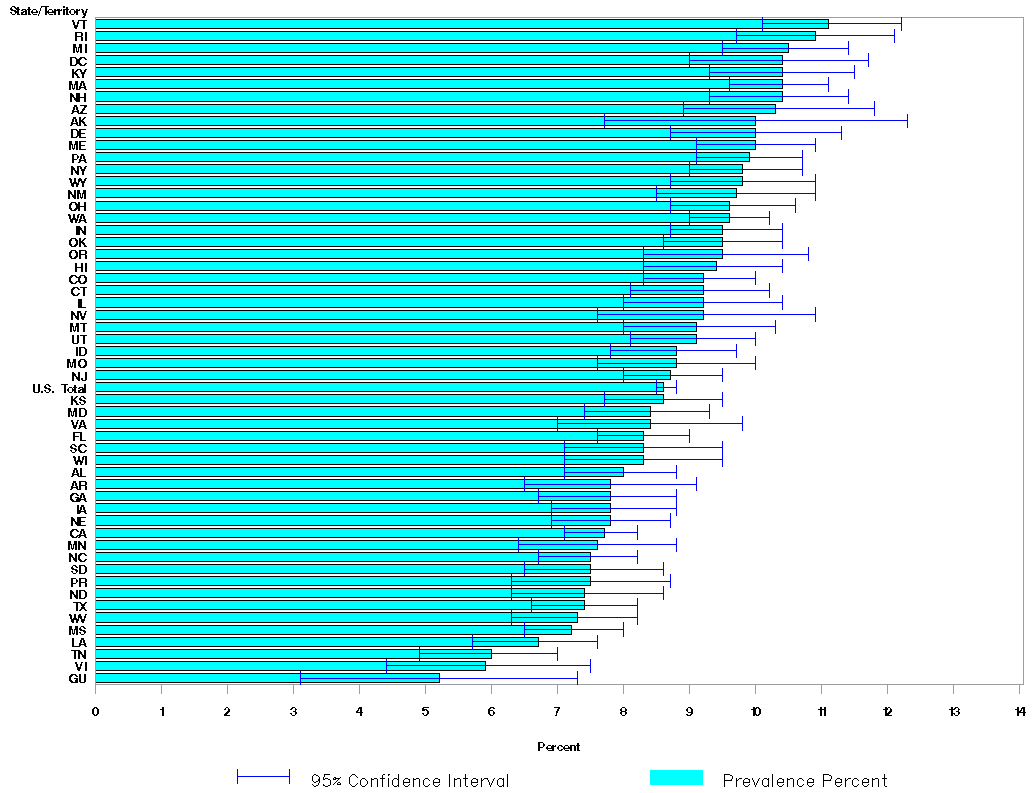 Adult Self-Reported Current Asthma Prevalence by State or Territory: BRFSS 2010