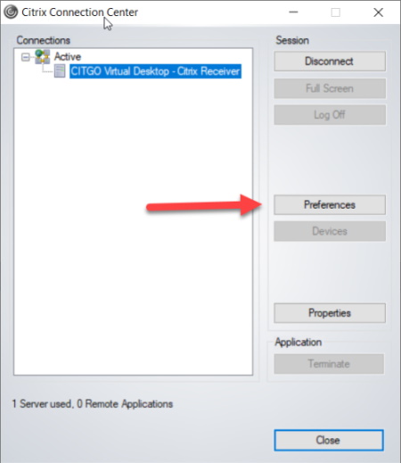 You can also check settings on your local machine when you are in CITGO by clicking on the Citrix Receiver icon in your Systray, just right click on the icon: