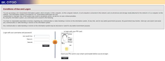 Smart Card Reader, go to http://citgo.cdc.gov and click the Log On button