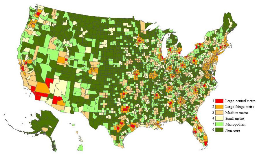 - Ingram DD, Franco SJ. 2013 NCHS Urban–Rural Classification Scheme for Counties. Vital Health Stat. 2014; 2 (166):1-73. Available at /nchs/data/series/sr_02/sr02_166.pdf.