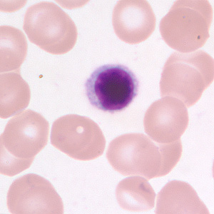 Figure D: Small lymphocyte in a thin blood smear, stained with Giemsa.