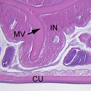 A worm-like object was removed during a routine colonoscopy performed on a 65-year-old male patient. The patient had no gastrointestinal complaints and no documented international travel. The object measured approximately 11.0 mm in length. The specimen was sent to Pathology for routine histological work-up, including sectioning and staining with hematoxylin-and-eosin (H&E). Digital images were captured and sent to the DPDx Team for diagnostic assistance. Figures A–D show four of the images sent for consultation. Follow-up ova-and-parasite (O&P) examinations of stool were negative. What is your diagnosis? Based on what criteria?