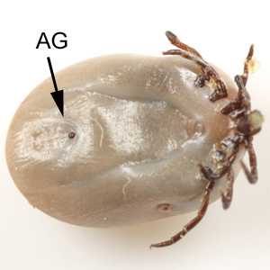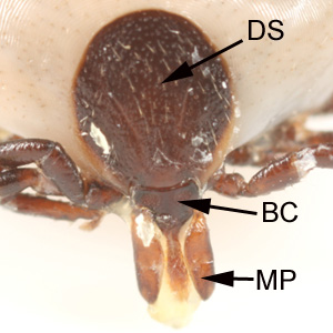 After returning from a weekend camping trip, a hunter from Massachusetts discovered a tick attached to his lower leg. He removed the tick and brought it to his local health department, who in turn forwarded the specimen to the State Entomologist for identification. Figure A shows a dorsal view of the tick, while Figure B shows the underside. Figure C shows a close-up of the mouthparts. What is your identification? Based on what criteria? What is the public health importance, if any, if this genus in North America?