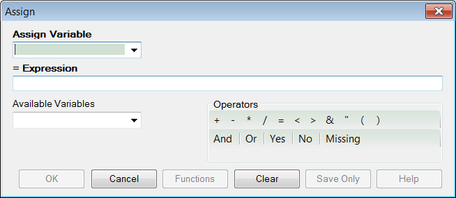 - From the Classic Analysis Command Tree, click Variables > Assign. The ASSIGN dialog box opens.