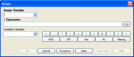 - From the Classic Analysis Command Tree, click Variables > Assign. The ASSIGN dialog box opens.